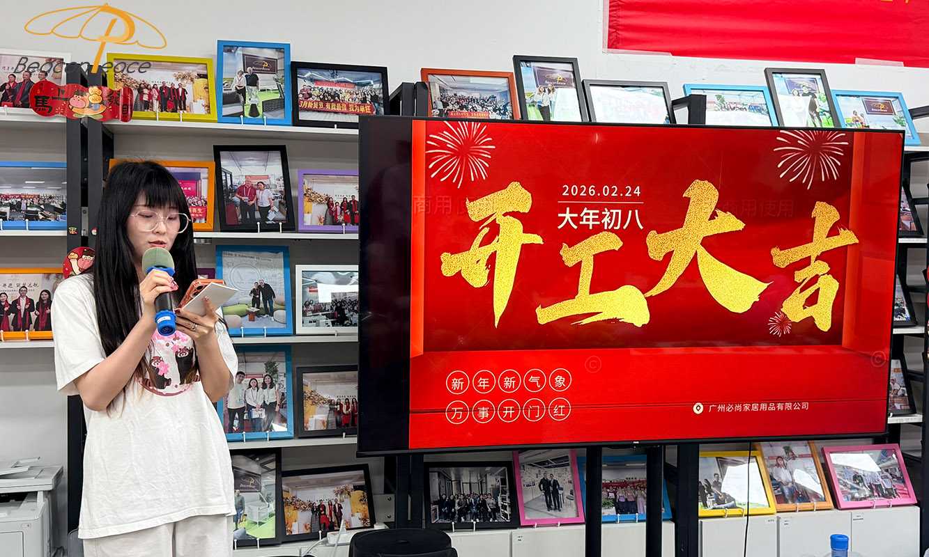 On February 24, 2026, Beacon Peace Outdoor Furniture Company ushered in a vibrant and hopeful workday. All employees gathered to solemnly hold the 2026 Spring Festival Opening Ceremony, officially launching a new journey of hard work in the Year of the Horse with a dignified, enthusiastic, and joyful atmosphere. This created a strong New Year's atmosphere and injected everyone with positive energy.
