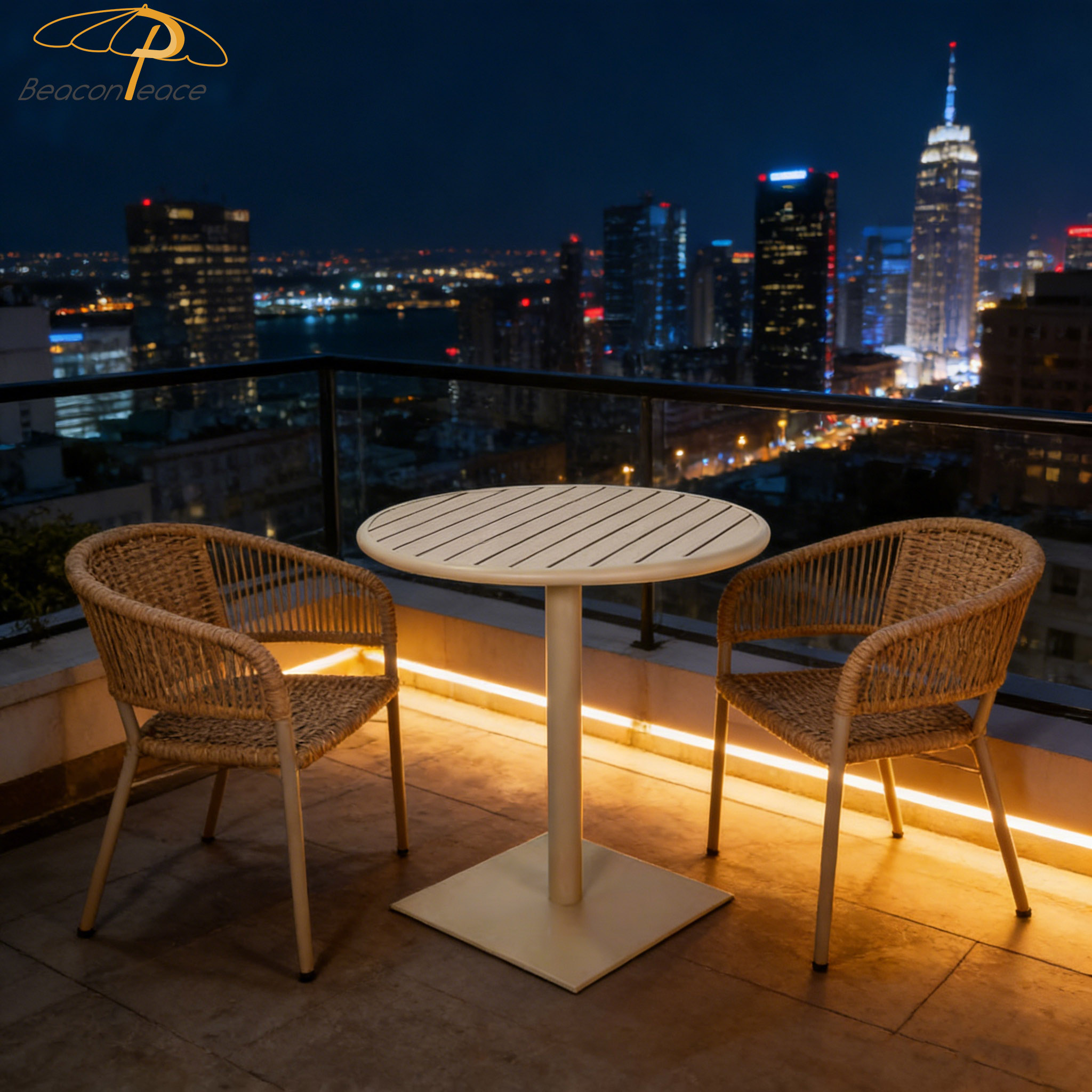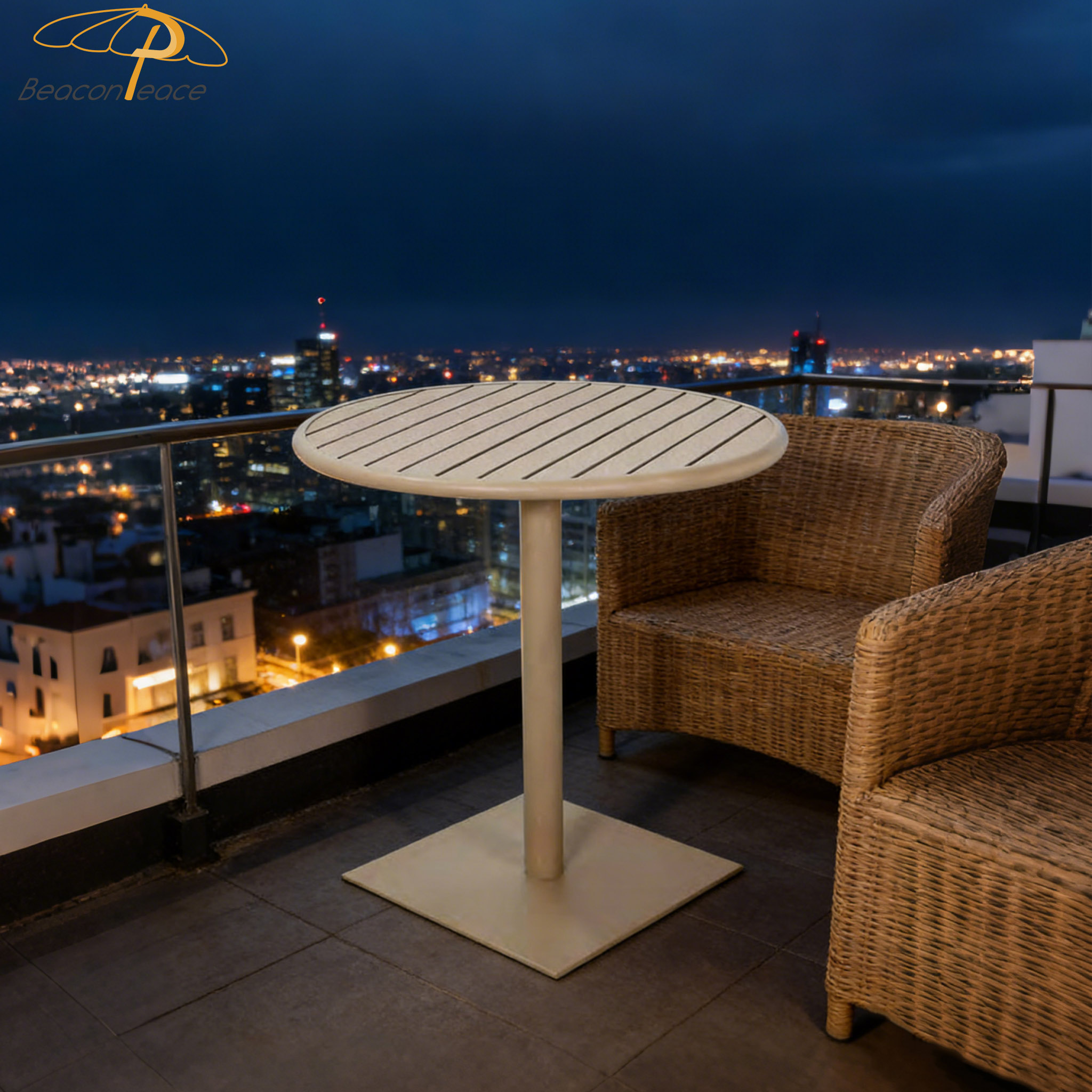 BP2040-PW Modern Leisure Outdoor Restaurant Aluminium Furniture Smalll Round Garden Cafe Dining TableMOQ :