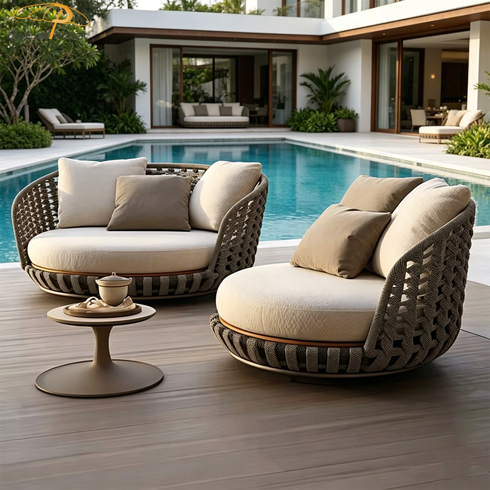 This outdoor aluminum and wicker sofa is designed to create a premium outdoor leisure experience. Constructed with a high-strength aluminum alloy frame, it is lightweight yet exceptionally sturdy, naturally possessing rust-proof and corrosion-resistant properties that allow it to effortlessly withstand harsh outdoor environments. The hand-woven outdoor wicker features a textured, natural finish that not only enhances breathability but also adds a unique touch of natural beauty. The sofa is equipped with professional water-repellent cushions, offering a multitude of benefits—including stain resistance, easy cleaning, quick drying, and breathability—to ensure you enjoy lasting comfort.