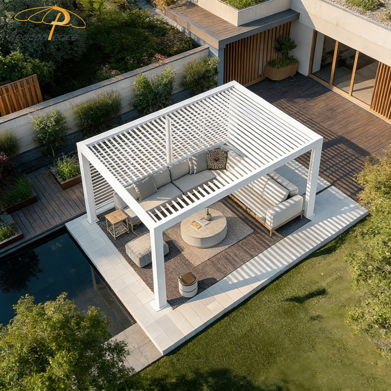 BP8711 Modern Aluminium Pavilion Outdoor Leisure Gazebo Aluminum Louvered PergolaMOQ :