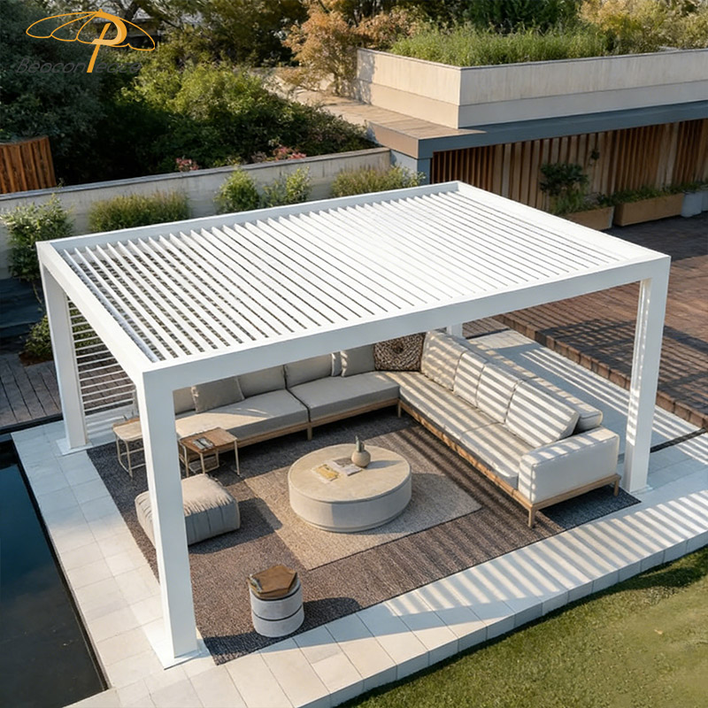 BP8711 Modern Aluminium Pavilion Outdoor Leisure Gazebo Aluminum Louvered Pergola |