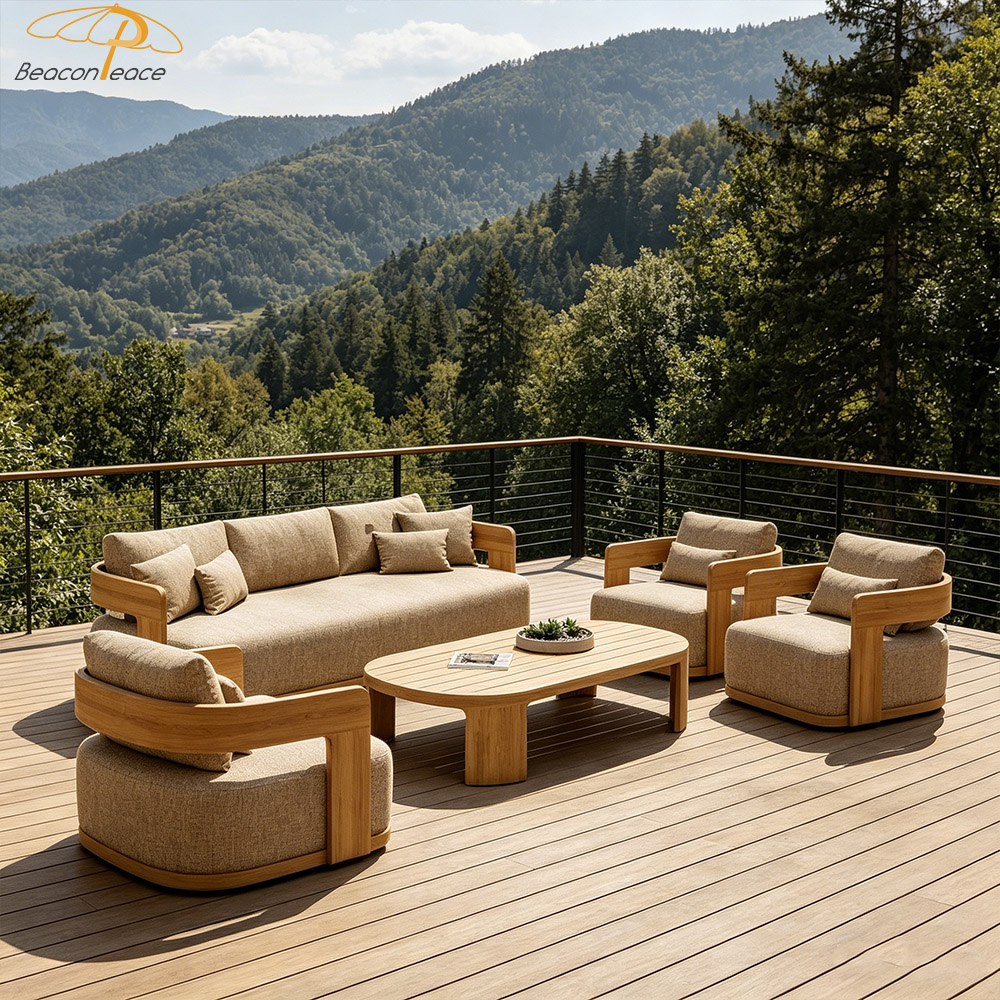 NEW-4101 Modern Luxury Wooden Outdoor Furniture Resort Garden Patio Teak Wood Sofa Set for Courtyard |