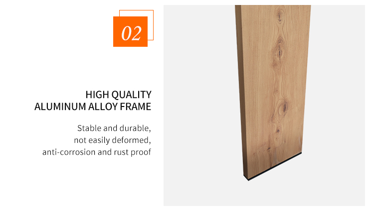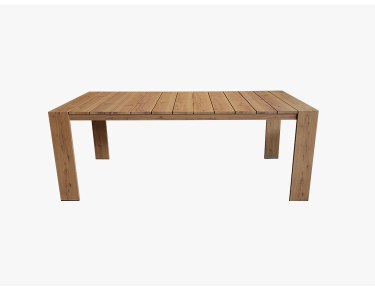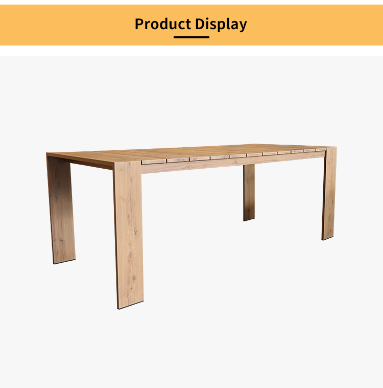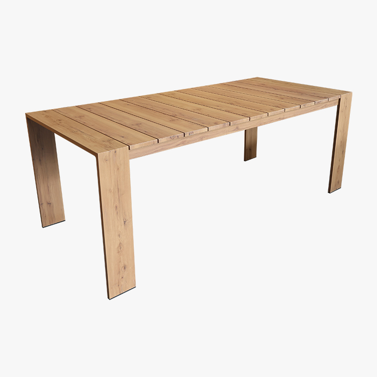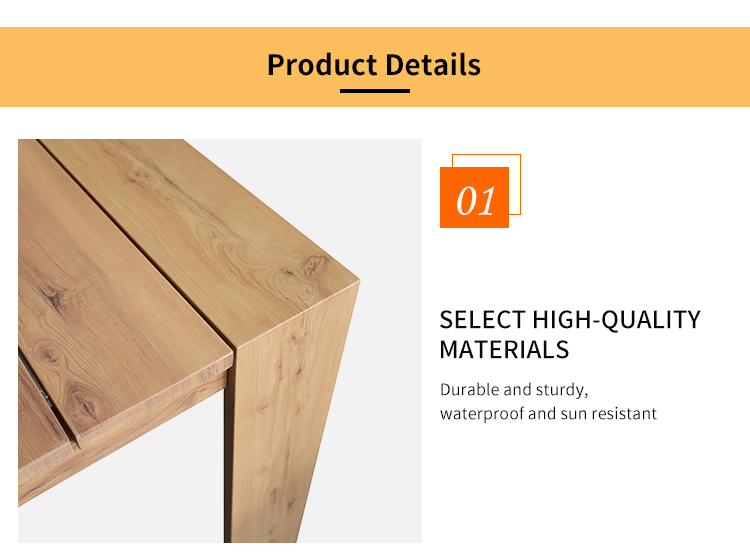 This outdoor aluminum alloy heat transfer table combines modern design with a natural style. The aluminum alloy frame ensures stability and durability. The surface is treated with heat transfer technology to create a delicate wood grain effect, offering the warmth of natural wood while retaining the lightweight and weather-resistant properties of aluminum alloy. Its clean, flowing lines and unique wood grain design easily blend into any outdoor space, enhancing its overall style.