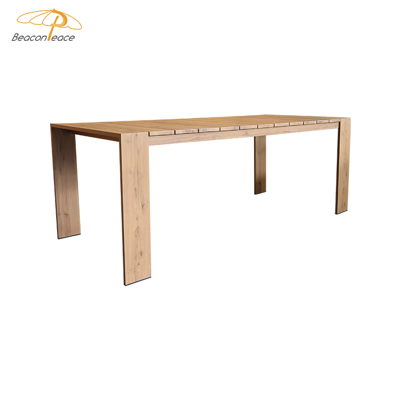 BP8464 Modern Outdoor aluminum furniture heat transfer wooden color Garden Patio Dining Table |