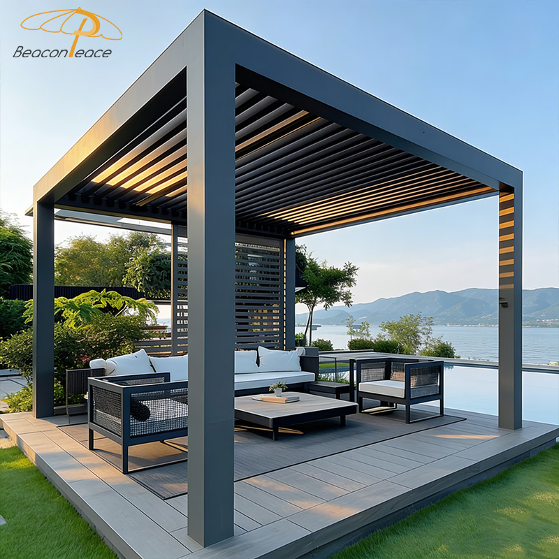 BP8709 Modern Outdoor Furniture Resort Villa Courtayrd Terrace Aluminum Louvered Pergola Gazebo PavilionMOQ :