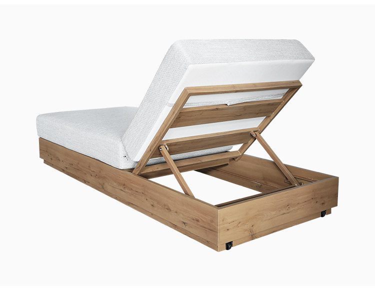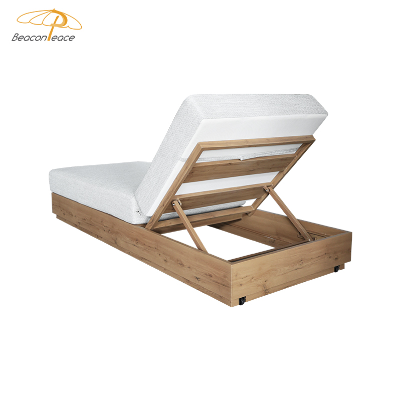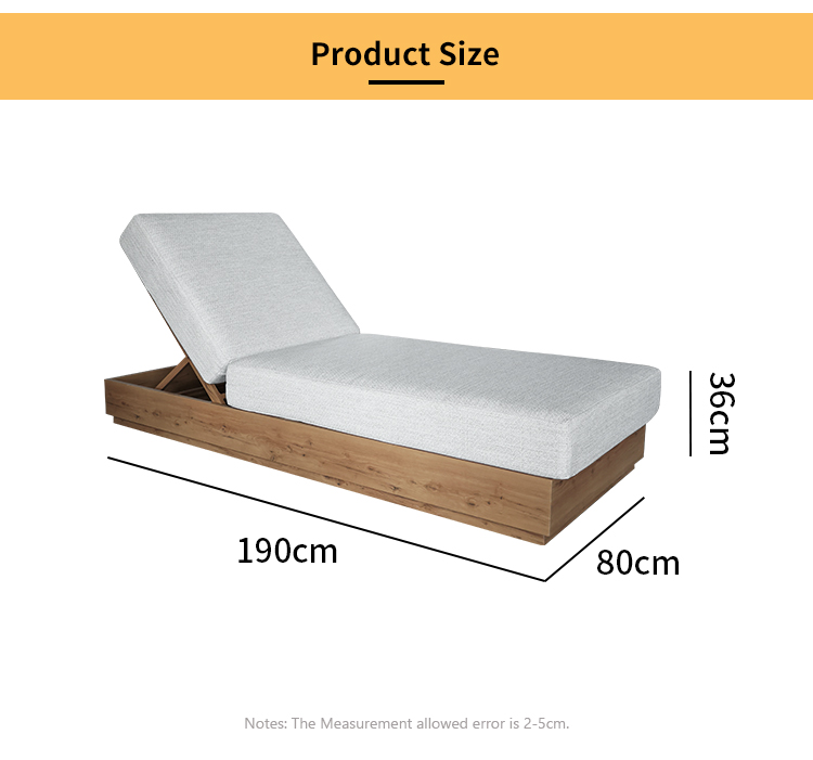 This outdoor bed is made of high-quality aluminum alloy frame, which is lightweight and durable. The heat-transferred wood grain base gives it a natural and elegant appearance, perfectly integrating into any outdoor environment. The adjustable back design allows you to easily find the most comfortable angle, and the comfortable sofa cushions provide soft support, allowing you to enjoy your leisure time in the sun.