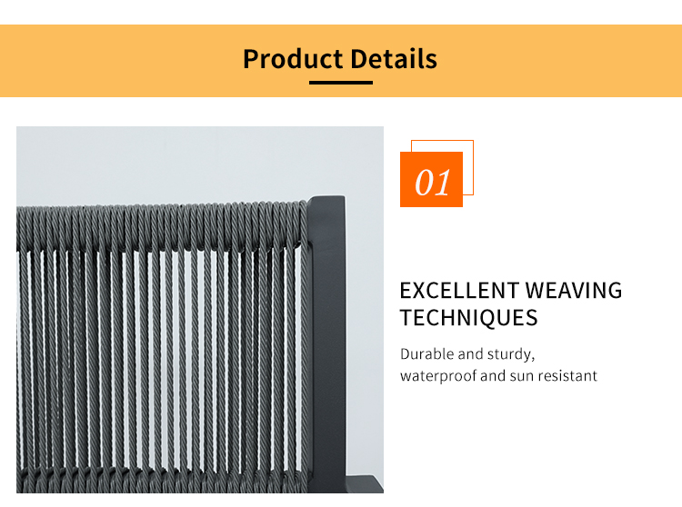 Table:aluminum frame with powder coated finish Chair:aluminum frame+outdoor rope weaving+waterproof cushion |